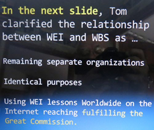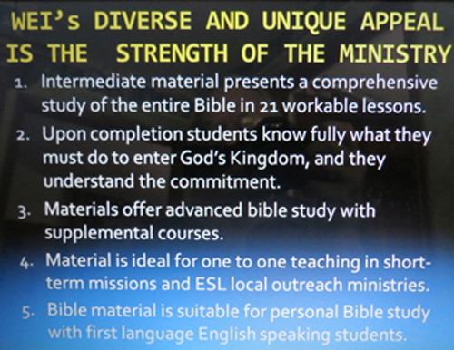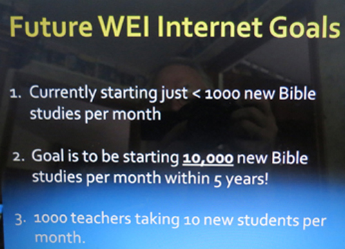Tom clarified the relationship between World Bible School and World English Institute. WEI and WBS remain individual organizations with the exact same objective -- "Proclaim the Gospel Throughout the World." With permission, WBS will use the WEI lessons, both English grammar and Bible, to reach into the world through the Internet. WEB has reached thousands of students in many ways. Most of their work has been in Africa where students are believers in Jesus. Now, with this new resource, they will follow WEI offering FREE English with Bible reading as part of their curriculum just as WEI has been successfully doing for a time all over the world. WBS's Internet program is a developing program beginning with a copy of WEI's teaching Internet program. May God bless his creation as we work together in this important mission. Tom appealed to all to participate in the "Internet 40" program - $300 per month for 40 supporters. Tom's charts follow. Atilla is from Albania where he found the Lord by learning English. After Marita was baptized, she and her teacher worship by Skype since there is no church in Montenegro.