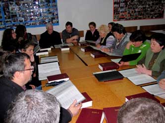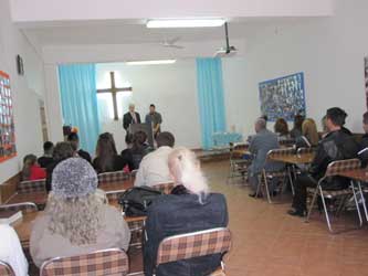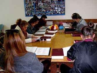 the class. Vera and Rezarta prepare the lessons from the Bible for them.