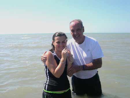 congregation went to the beach, and Tom baptized Adriana Murrizi into