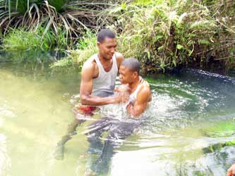 Abraham Akpaneyen, accepted Christ and was baptized at