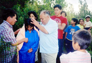 Julio Prays for Emilia Cruz Rosales after Her Baptism