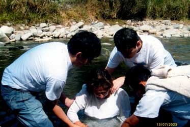 of baptizing Donna Suseth Alvarado Castillo and her husband Giovanni into